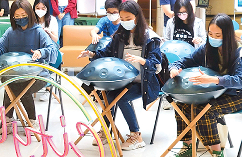 | Students enjoying their first taste in playing handpans in the Handpan Performance and Workshop. |