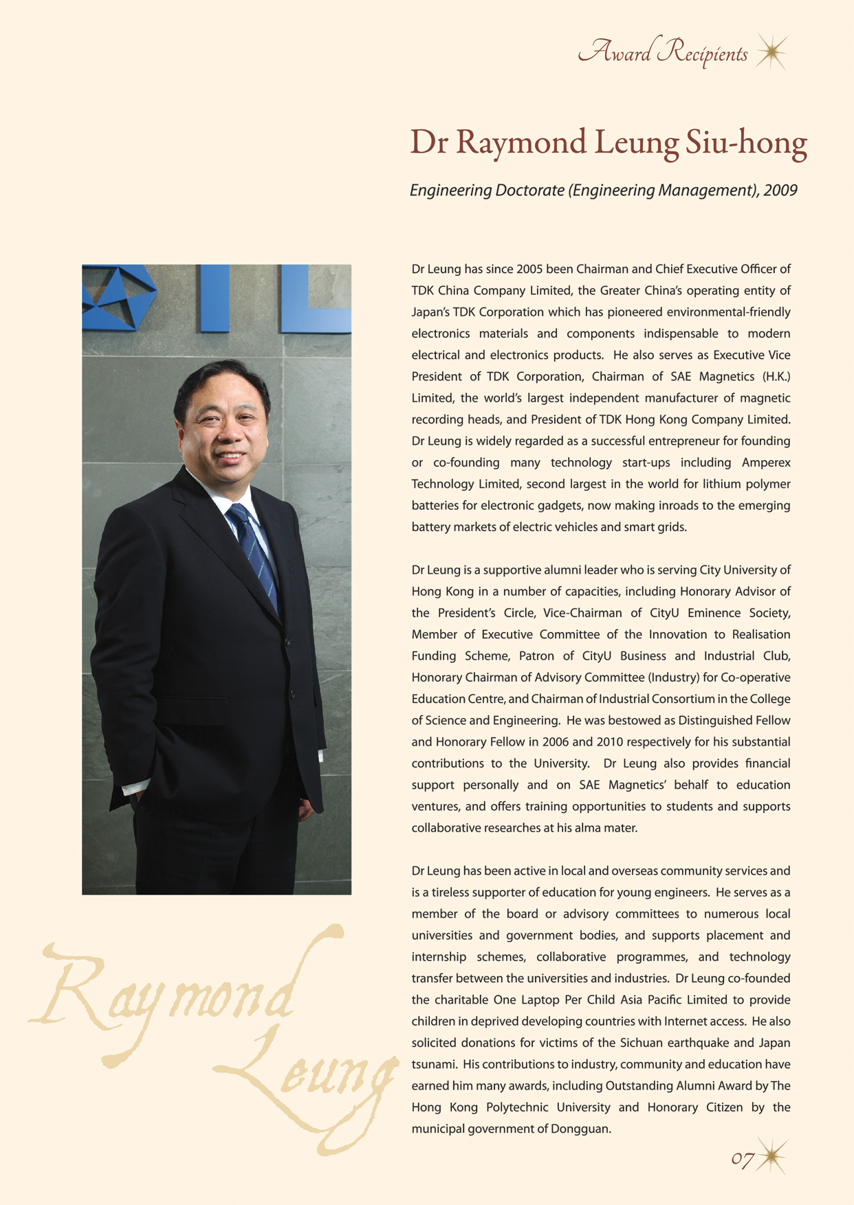 Chairman & Chief Executive Officer, TDK China Company Limited