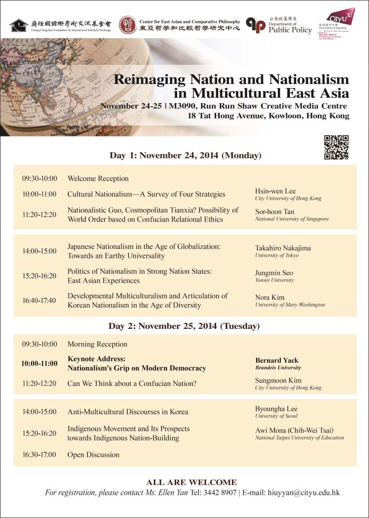 Reimaging Nation and Nationalism in Multicultural East Asia Conference Schedule Coordinator: Dr. Hsin-wen Lee & Dr. Sungmoon Kim