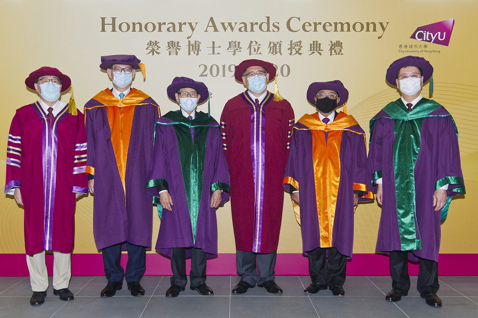 CityU conferred honorary doctorates on five distinguished persons in recognition of their significant contributions to education and the well-being of society.