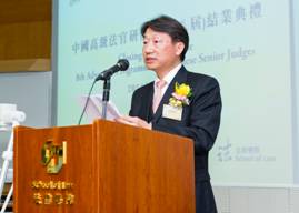 Prof. Lin Feng delivered the welcoming speech. He was proud that CityU possess resources and experience in related fields to help Chinese judges have a better understanding of Hong Kong’s judicial system through the platform of the Advanced Programme. |