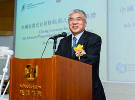 The Closing Ceremony for 8th Advanced Programme for Chinese Senior Judges was held on 21 January 2014 at City University of Hong Kong. The officiating guests included Dr. LIU Xinkui, Director-General of the Legal Affairs Department, Liaison Office of the Central People's Government in the HKSAR; Mr. SHIEH Paul SC, Chairman of Hong Kong Bar Association; Mr. LAM Ambrose S K, President of The Law Society of Hong Kong; Mr. DU Guoxing, Vice Chairman and General Manager of China Legal Service (H.K.) Ltd; Prof. LIN Feng, Acting Dean, School of Law, City University of Hong Kong; and Prof. WANG Guiguo, Director of Centre for Judicial Education and Research and Chair Professor of Chinese and Comparative Law, School of Law, City University of Hong Kong. |
