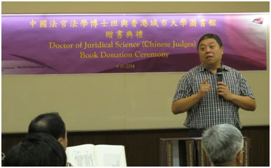 | "Doctor of Juridical Science (Chinese Judges) Book Donation Ceremony" was held by Run Run Shaw Library, City University of Hong Kong (CityU Library) on October 9.The students of Doctor of Juridical Science (Chinese Judges) Programme (JSD) from School of Law of City University of Hong Kong donated a set of “Judgmentin the Republic of China peiod” to the CityU Library. The guests included Professor WANG Guiguo, Director of Centre for Judicial Education and Research & Chair Professor of Chinese and Comparative Law, School of Law, City University of Hong Kong; Professor GU Minkang, Associate Dean, School of Law, City University of Hong Kong; Doctor GUAN Wenwei, Assistant Professor,School of Law, City University of Hong Kong;as well asthe visiting JSD Chinese Judges students. |