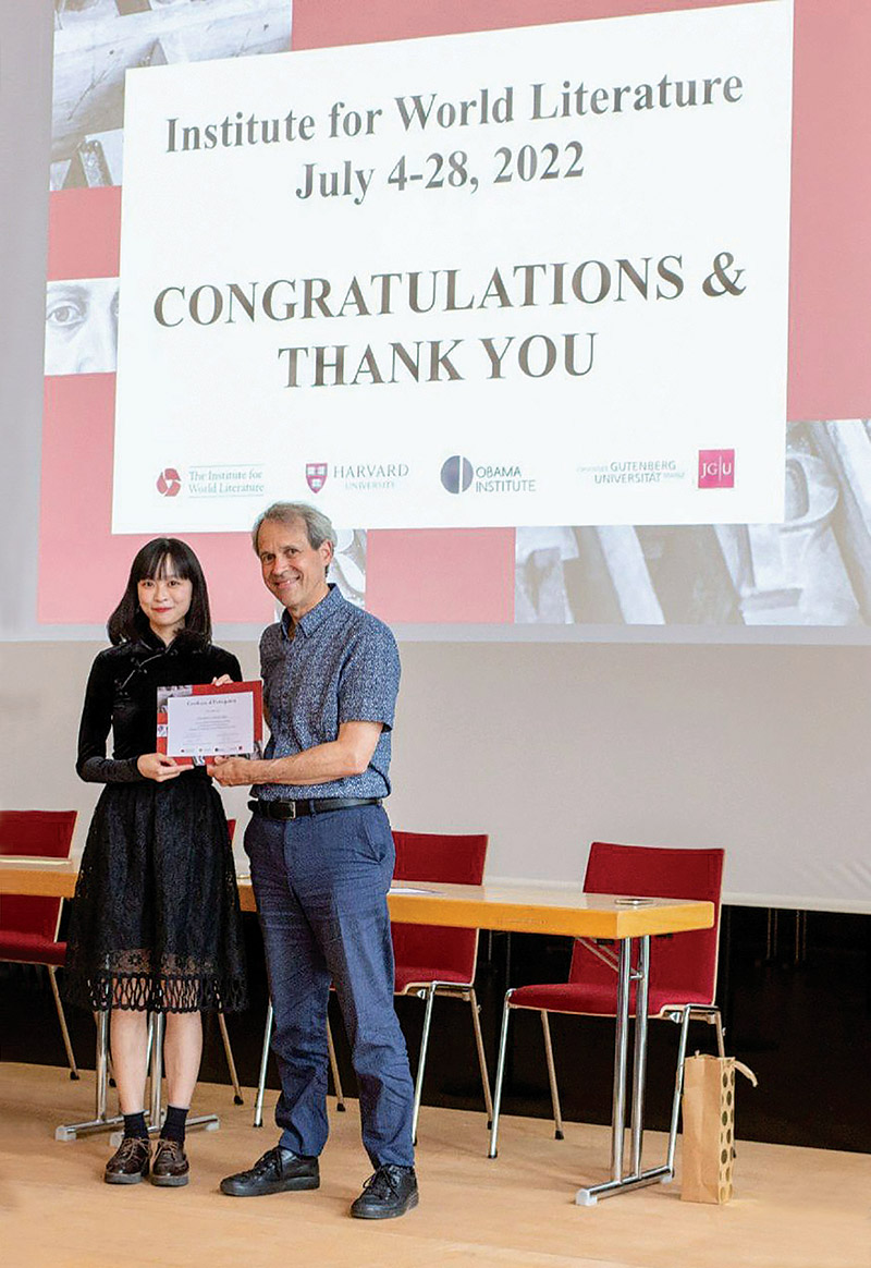 Three CLASS students participated in the programme of Harvard University’s IWL at Johannes Gutenberg University, Germany. The four-week programme included seminars, colloquia, plenary lectures by distinguished guest speakers, panel meetings and discussions. Nicola WAN Shun-yu, a PhD student of the Department of English, found the trip rewarding as she took the precious opportunity to speak with Herta MüLLER, the Nobel Laureate in Literature, during the plenary talk. The in-depth discussion was of insightful ideas, prompting her to refine the thesis.