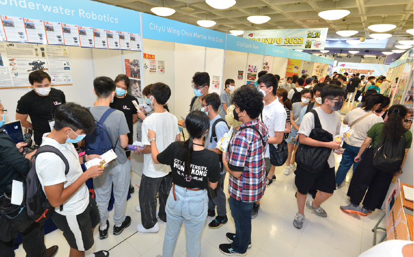 The first Student Development Services (SDS) EXPO 2022 was successfully held from 17 to 20 August 2022, providing a platform for students to join the broad spectrum of student societies and groups that they are passionate about. Over forty student-run societies and groups were housed at the SDS EXPO, with over 700 freshmen visiting the EXPO, learning about various activities and out-of-classroom learning opportunities from their senior fellows, under the ease of the pandemic. The CityU Student Chapters, performing art groups such as Drama Society or Chinese Orchestra, Debating Teams, Service Learning, CityU Sports Teams and Clubs…you name it! Free coffee and popcorn were also arranged to spice up the vibe!