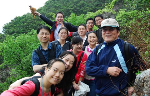 2009年青年學(xué)者站在水塘上比劃天下 |