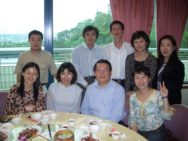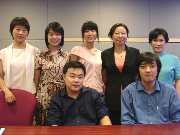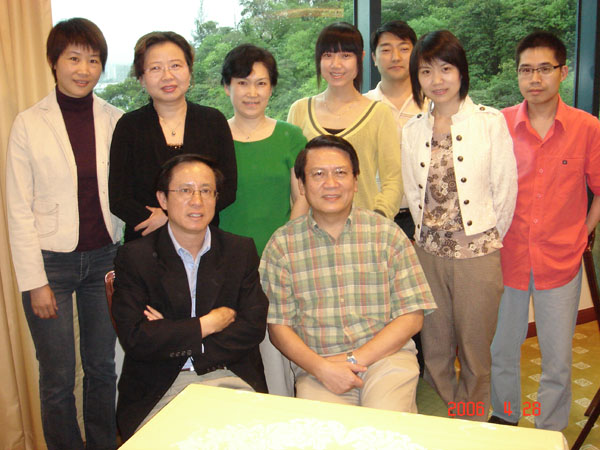 臨別合影(2007 年春節(jié)前夕):後排左起鄭西帆(浙江大學(xué))、李曉靜(上海交通大學(xué))、許靜(復(fù)旦大學(xué))、王曉梅(西北大學(xué))、周亭(中國(guó)傳媒大學(xué))、姚正宇、李金銓、何舟、祝建華。 |