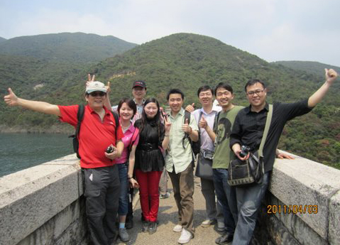 2011年第2期多友到東坪洲“探世界”(下左)吳來安(安徽師大)、沈國麟(復旦)、郭小平(華中科大)、汪凱(浙大)、王辰瑤(北大)、李金銓(城大)
