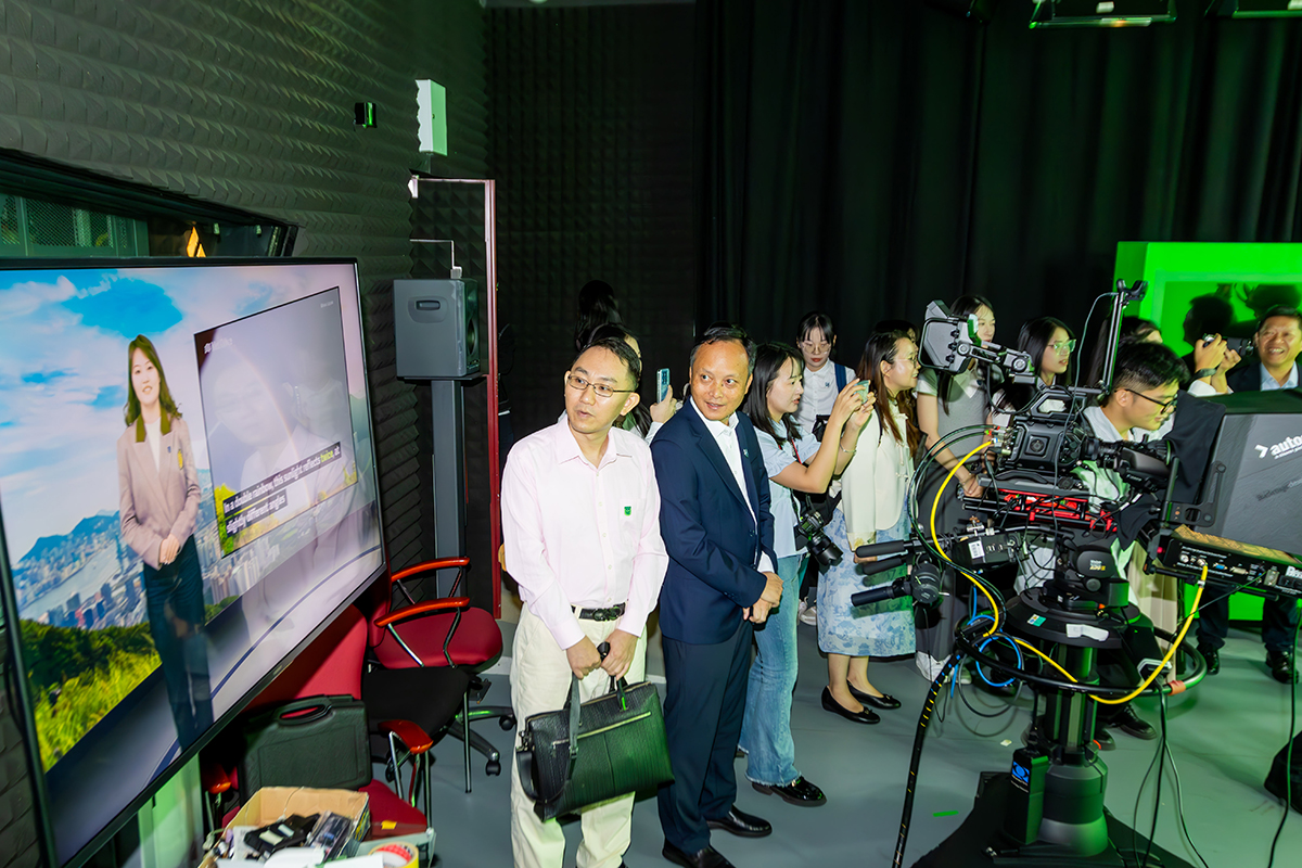 During the visit, the delegation toured our state-of-the-art facilities, including the COM Omnimedia Digital Newsroom, 3D Virtual TV Studio, and Advertising Design and Shooting Studio. Some GDUFE students expressed their excitement about our facilities; they captured photos and even showcased their skills by presenting news and weather reports in front of the camera.