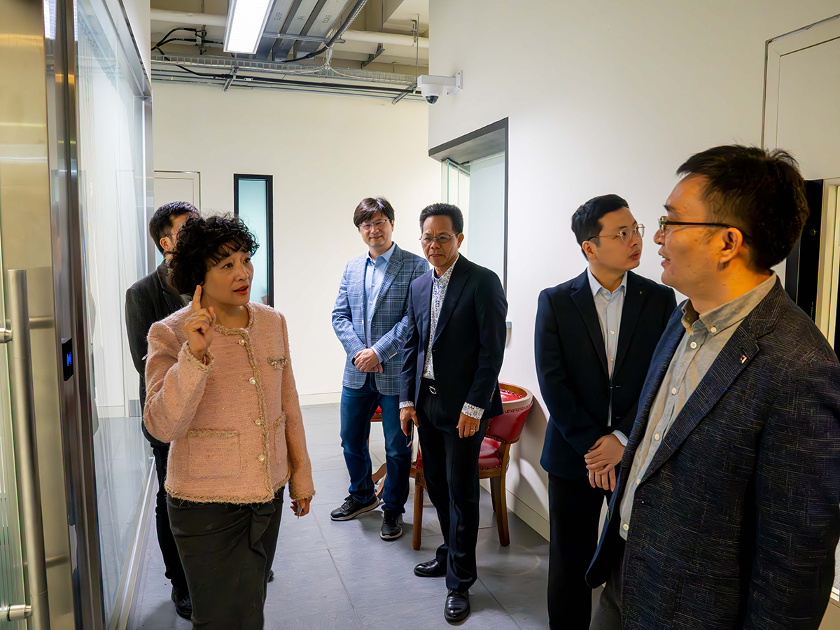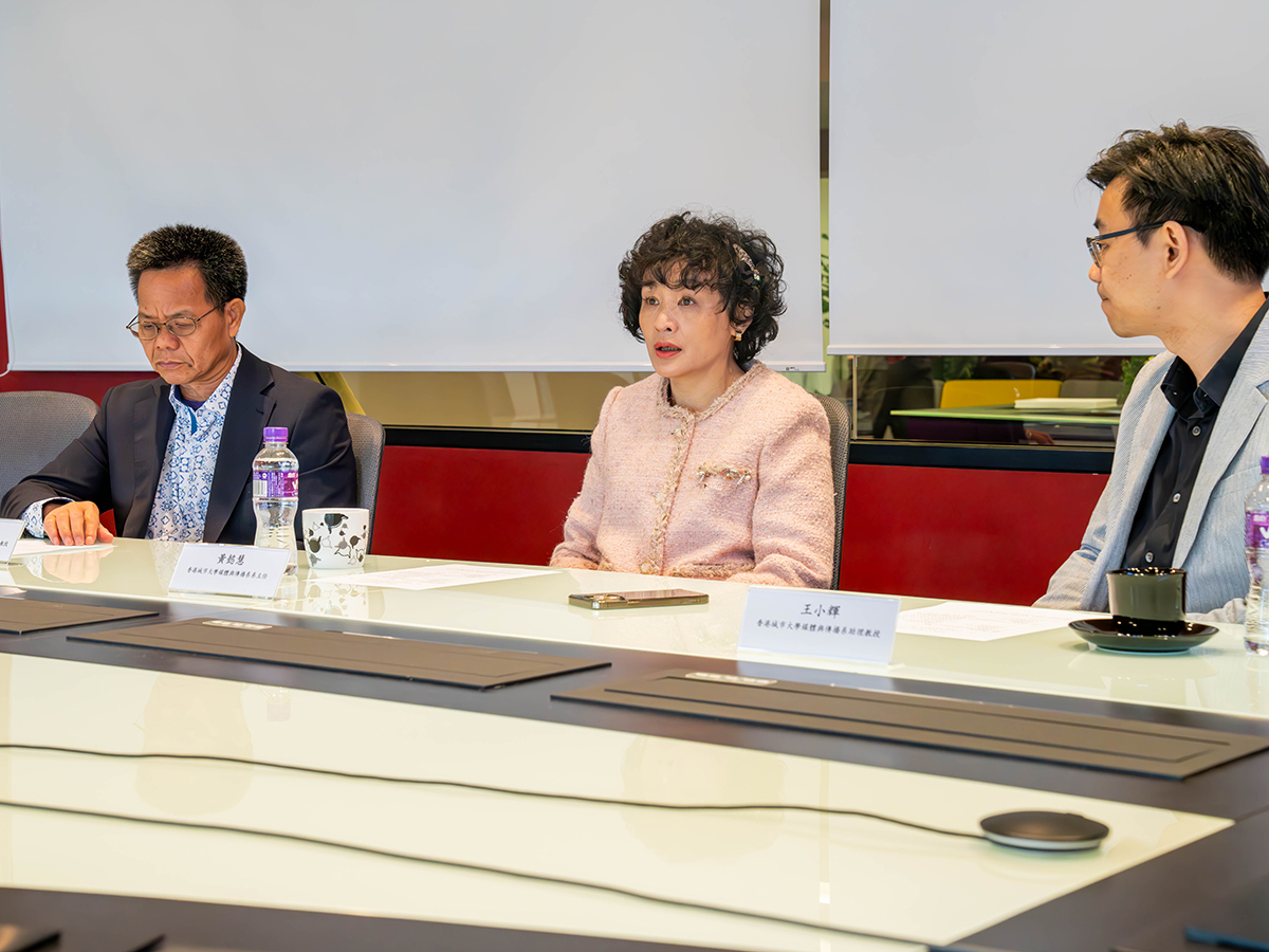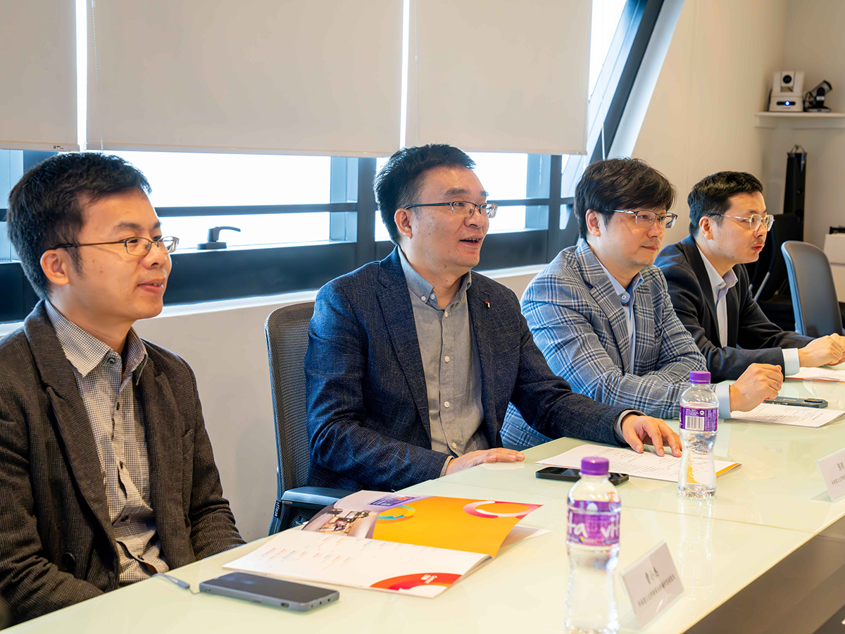 Following the tour, the delegation engaged in an academic discussion about the master's program with COM faculty members, including Prof. Huang Yi-hui, Head of the Department of Media and Communication, Prof. Zhou Shuhua, Chair Professor of the Department of Media and Communication, and Prof. Wang Xiaohui, Assistant Professor of the Department of Media and Communication.