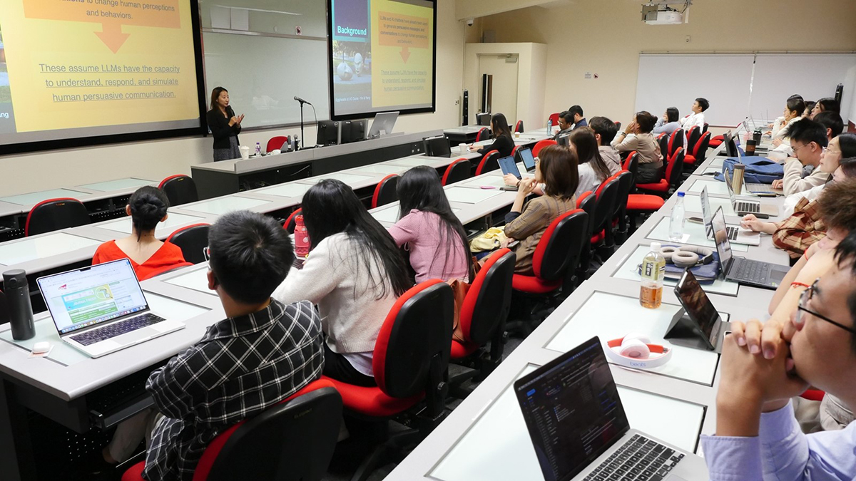 The seminar explored how generative AI and large language models (LLMs) are transforming communication research and public health interventions. Dr. Zhang discussed how LLMs can automate tasks like message creation and experiment design, enabling scalable communication solutions. She highlighted both the potential of LLMs in creating personalized health messages and the challenges they pose in accurately predicting human behavior. The seminar attracted around 20 PhD students and faculty members who engaged actively and contributed to a thought-provoking discussion.