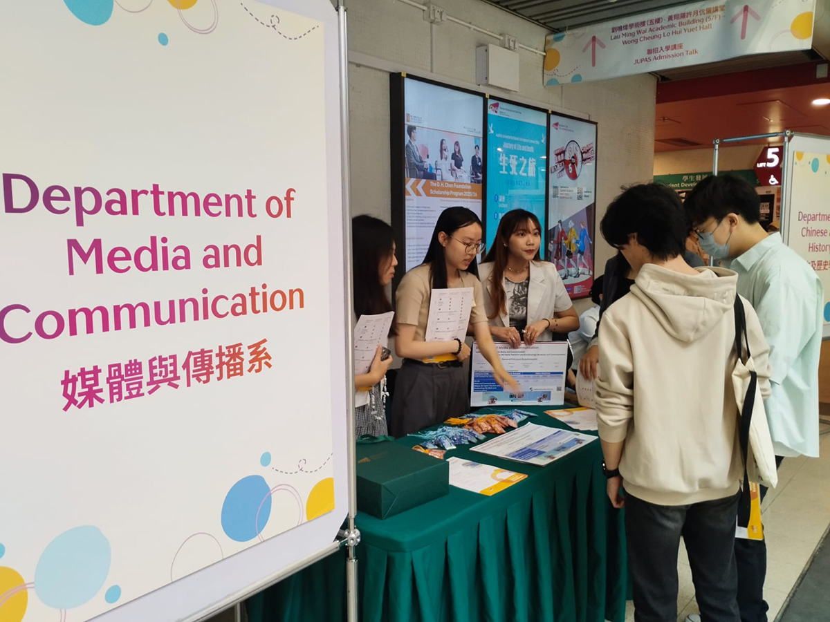 To engage with prospective students, CityUHK organized the JUPAS Consultation Day on 17 May 2025, the Department of Media and Communication (COM) set up a booth to provide an overview of the program structures while addressing inquiries to assist students in making informed JUPAS choices.