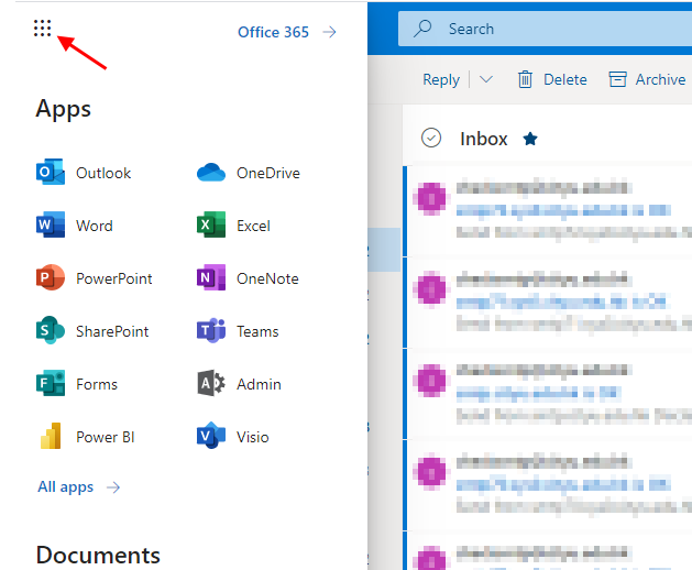• Click (or tap) a tile to go to that app or service. For example, you might choose Outlook to go to your email, or OneDrive to go to your OneDrive for Business library. More information regarding the use of App launcher and other latest changes in Microsoft 365 can be obtained at Find help for the latest changes in Microsoft 365.