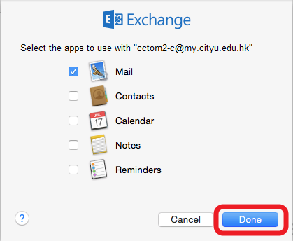 Select the apps to use with this account. Click Done. Now you can send and receive emails by Apple Mail.