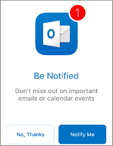 If this is your first time to start the app, you may be asked to choose whether you would like Outlook to send you notifications. Just tap your choice.