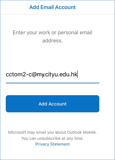 (e.g. cctom2-c@my.cityu.edu.hk) and tap Add Account.