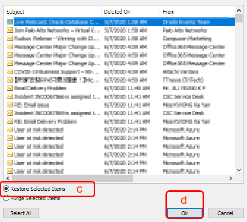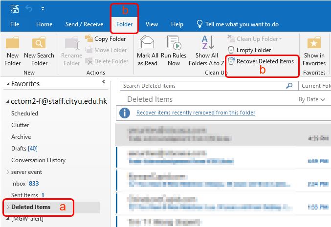Procedure of using "Recover Deleted Items" function in Microsoft Outlook: (For advanced users)