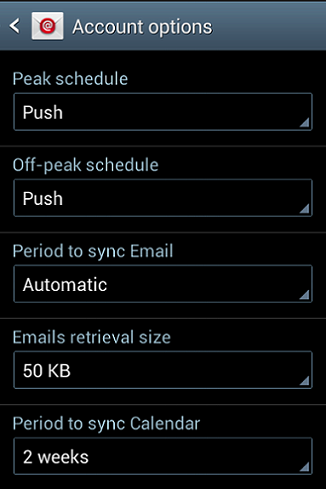 9. You will be asked how often the server will sync with your device, the size of the emails to retrieve etc. Please configure according to your usage.
