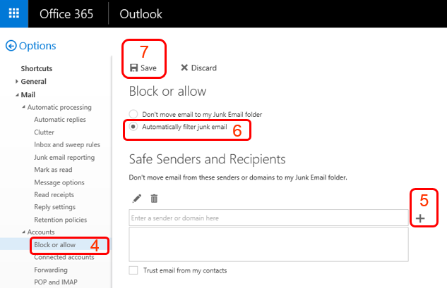 How to set up Safe Sender List in Microsoft 365 using OWA (Web logon)?