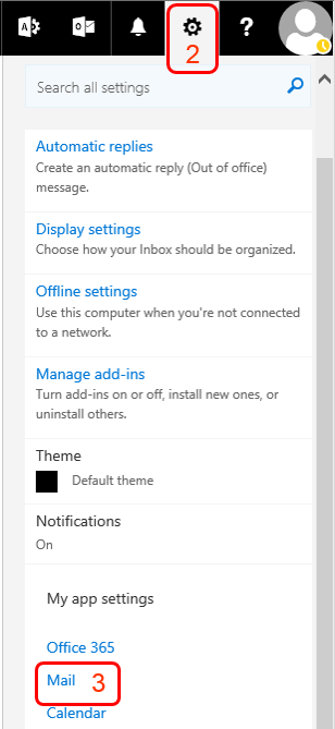 - Click gear icon at the top-right corner of OWA window.