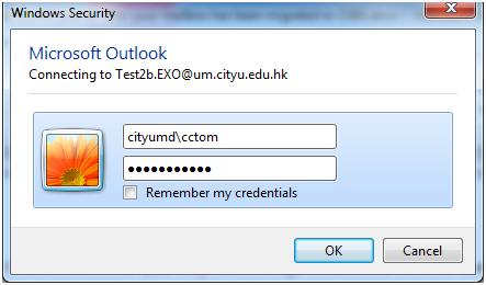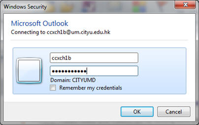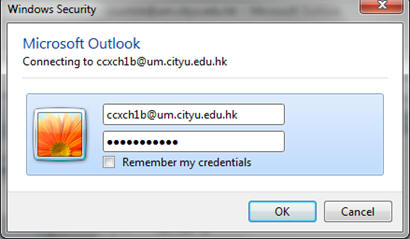 After restarting Outlook, enter your Username as eid@um.cityu.edu.hk