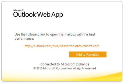Click the link in the OWA logon screen as prompted. You will be re-directed to the