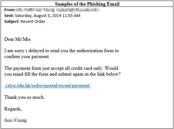 Samples of the Phishing Email