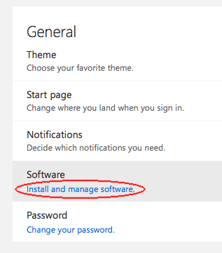 - In Microsoft 365 settings page, click Install and manage software under Software section.