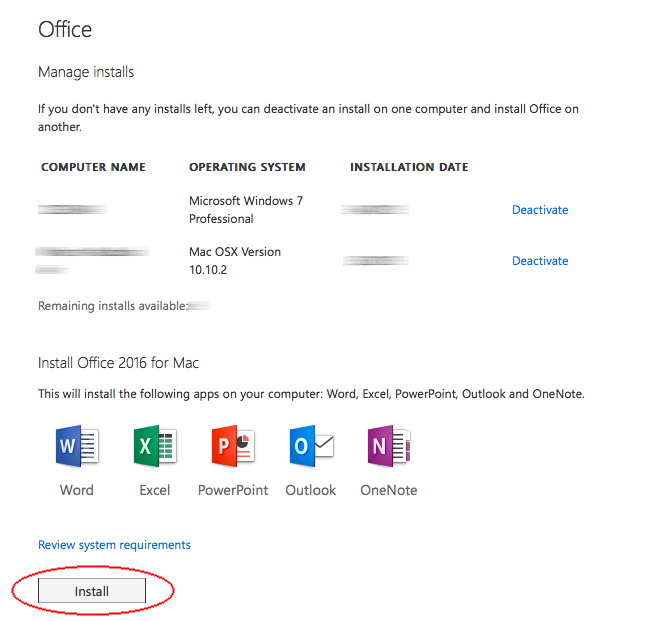 - Scroll down to the end of page, and you should find Office 2016 for Mac. Click Install to download Office 2016 to your Mac.