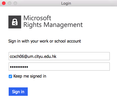 - Click Verify Credentials and enter your email address in the format eid@um.cityu.edu.hk and your password; make sure the option Keep me signed in is checked, and click the Sign in button.