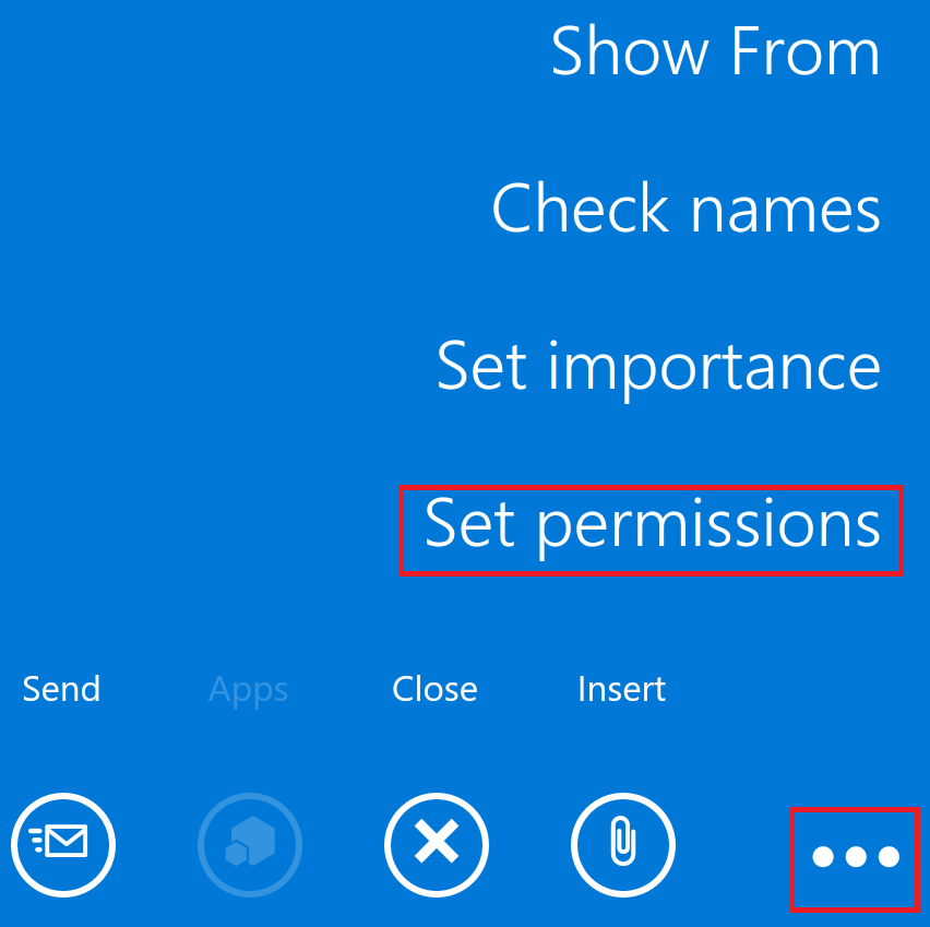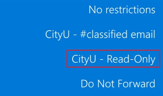 If you would like to send confidential email as read-only (i.e. recipient(s) cannot print, edit, or forward the email), tap "...", select Set permissions and then select CityU - Read-Only. (the label #classified is optional as all read-only email is encrypted by default)
