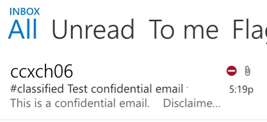 NOTE: Microsoft released another email client for mobile, called Outlook app (Outlook for iOS and preview of Outlook for Android). Please note that this app supports sending/viewing confidential email in Inbox only.