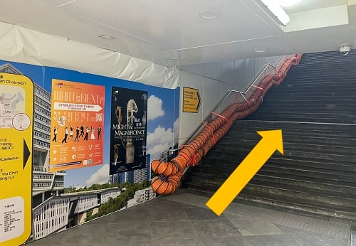 Turn right at the TV, and go upstairs to Tat Chee Avenue.