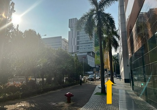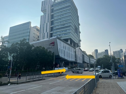 沿著達之路一直向前行,在行人過路處橫過馬路,前往城大方向。