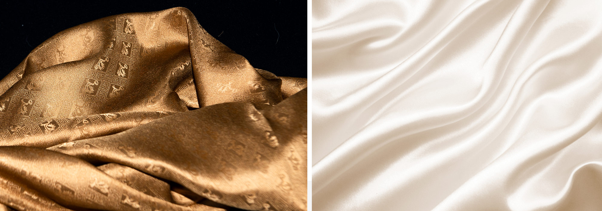 湖州雙林綾絹廠的産品。左方有花紋的是綾,右方素白的是絹。