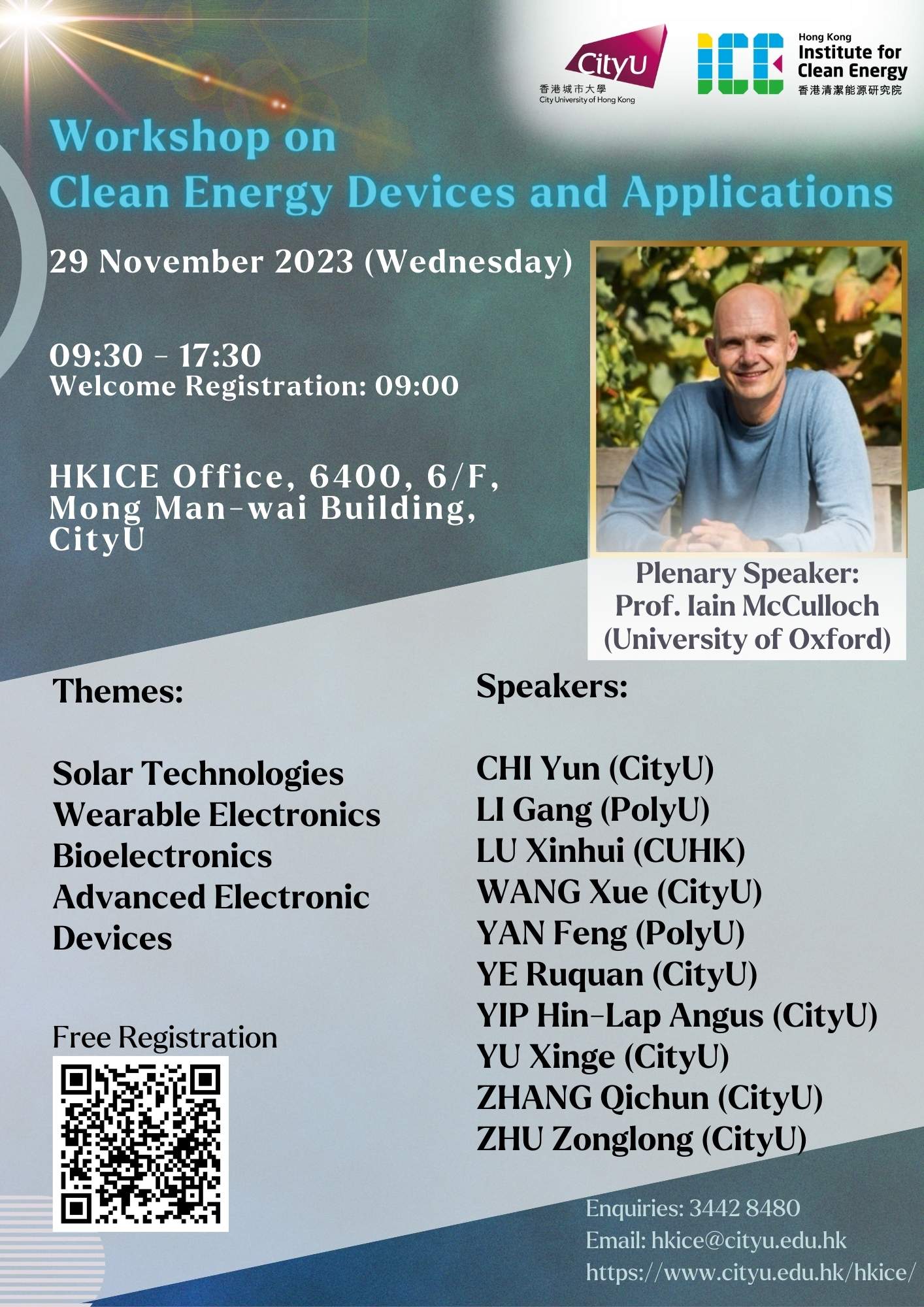 Hong Kong Institute for Clean Energy6/F, Mong Man-wai Building City University of Hong Kong, 83 Tat Chee Avenue, Kowloon Tong, Hong KongEmail: hkice@cityu.edu.hkTel: (+852) 3442 8480 Fax: (+852) 3442 0333