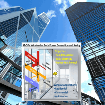 Research for solar energy generation is one of the main focuses of HKICE, which is rapidly booming and is expected to lead the growth in global renewable capacity. Competing/ complementing with Si and CdTe-based solar cells, the printable organic and perovskite solar cells are promising in providing high power conversion efficiencies and low energy costs than current PV technologies. Our research spans fundamental and applied material and device investigations, including theory/simulation, new material explorations, smart device configurations, device upscaling, stability/environmental testing, etc. With different precursor/material formulations, solar cells could be printed in desired forms with colours and semi-transparency, allowing them to be widely used in Building-integrated PVs (BIPVs) for urban solar farm applications.