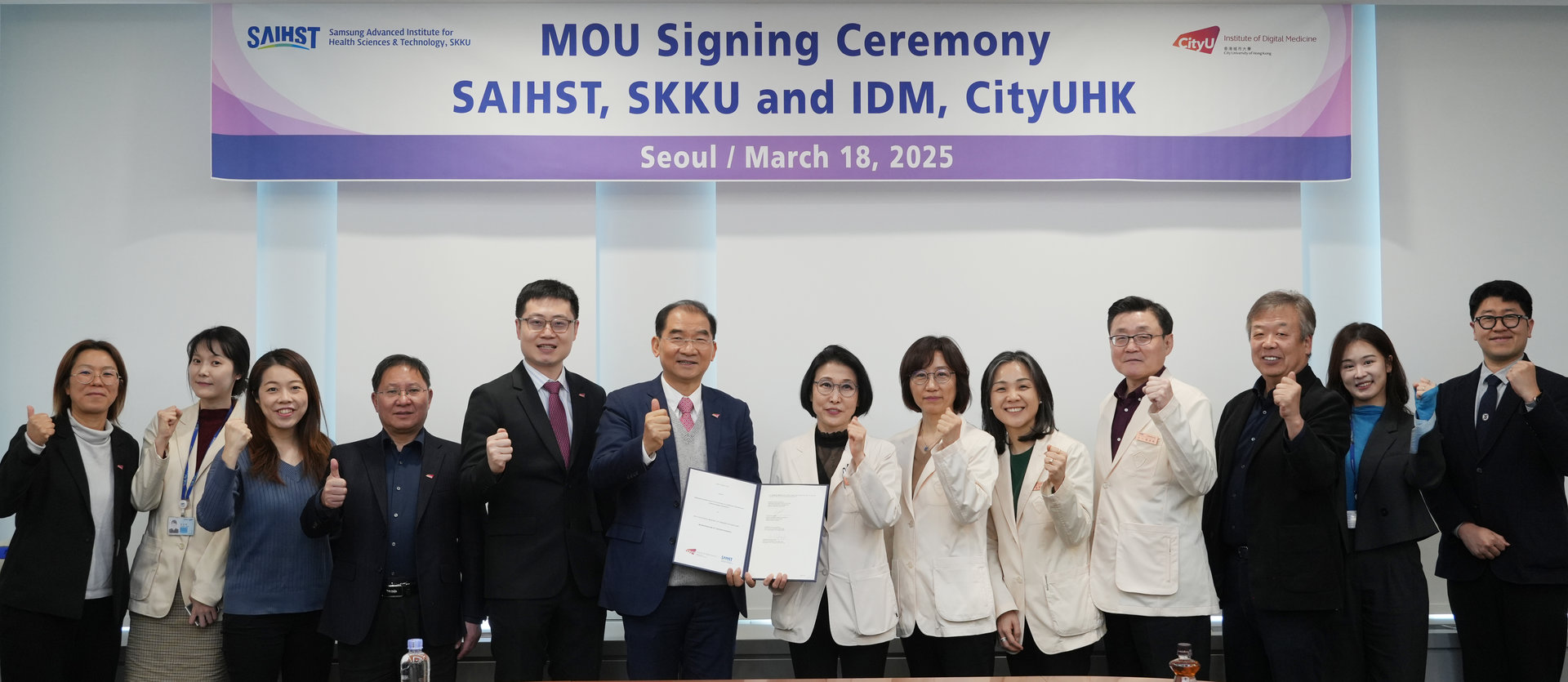 The Institute of Digital Medicine (IDM) of City University of Hong Kong (CityUHK) and the Samsung Advanced Institute for Health Sciences & Technology (SAIHST), in Korea, signed a Memorandum of Understanding (MoU) in Seoul on 18 March 2025. It aims to establish collaboration on health-related research, particularly in cell and gene therapy, bioinformatics and biomedical engineering, as well as talent development and commercialising digital health solutions to benefit society.