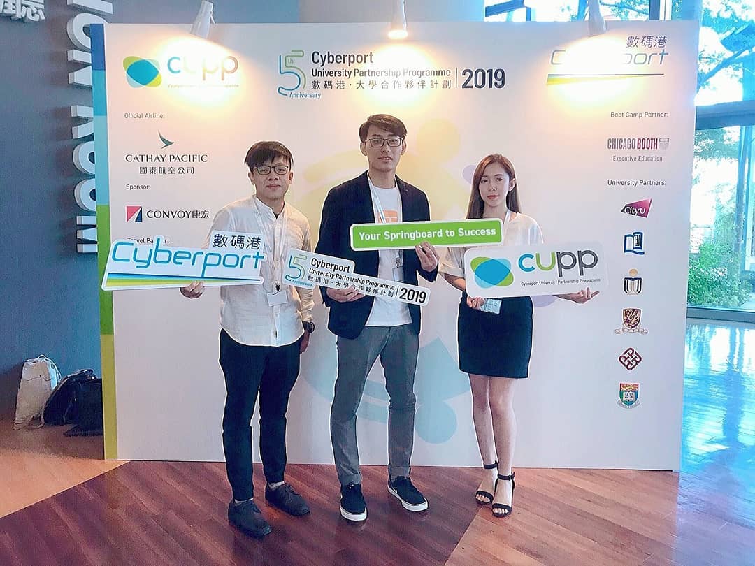 Raymond Wong (left) and Rainix He (centre) co-founded Intepay, a Hong Kong-based fintech start-up, and won the support of Cyberport Creative Micro Fund (CCMF). Standing next to them is Pricilla Leung, another core member of the team, who is a CityU graduate and majored in BBA Business Analysis.Intepay has received financial support from HKSTP’s Science and Technology Entrepreneur Programme (STEP, HK$100,000), the Cyberport Creative Micro Fund (CCMF, HK$100,000), and HKSTP’s Incu-Tech Incubation Programme (Incu-App, 850,000). Located in Hong Kong Science Park, the start-up has seven employees and plans to recruit more staff with a government grant from the FinTech Anti-epidemic Scheme for Talent Development (FAST).