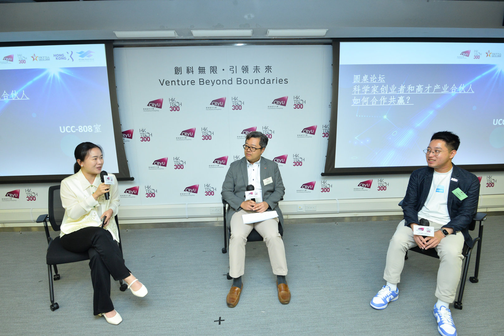 本次活動同時開設了特別的論壇環節,邀請了城大協理副校長(企業)何頌賢教授、香港X科技基金投資及孵化總監劉茜女士、創冷科技首席執行官兼香港城大能源及環境學院校友朱毅豪博士就“科學家創業者和高才產業合伙人如何合作共贏”進行討論。