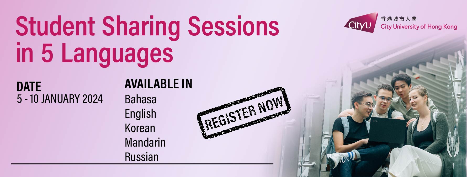 Consider applying to City University of Hong Kong (CityU) but unsure about your future opportunities? Want to gain some insights from current students about their experiences at CityU? Look no further! Join one of our informative and interactive student sharing sessions conducted in multiple languages via Zoom!
