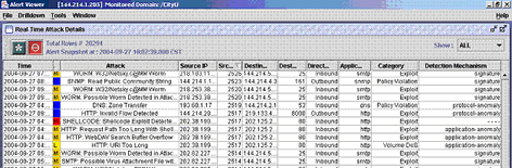 In addition, intrusions can be identified according to protocols, OS, severity, direction, source IP address, destination IP address; the real-time console should be able to manipulate the attack database based on these properties. This feature is shown in Figure 2-1 below.