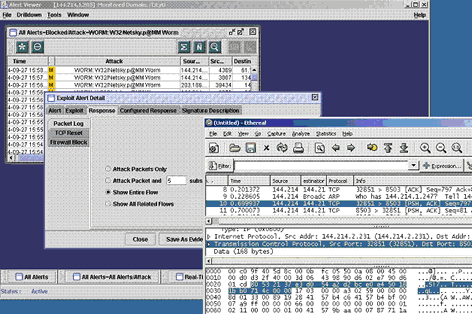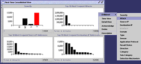 Furthermore, the attacks may have worked in sequence in order to compromise a system. We may want to group or drill down some of the inter-related packets in order to study the attacking mechanism. Figure 2-2 shows how the real-time console of the IPS can provide this function.