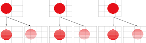 Figure 2a: Traditional thinking of interlaced fields of a moving circle in video-based materials