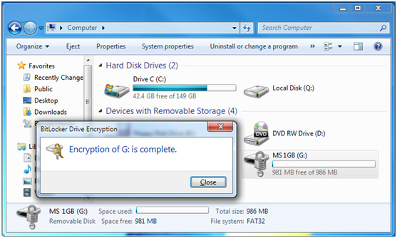 When the encrypted USB drive is plugged into a Windows 7 computer, you must key in the correct password before the drive can be read/written. Under Windows 7, a software called “Bitlocker To Go Reader” is automatically added to the USB drive when it is encrypted to enabling the software being subsequently copied to non-Windows 7 computers (e.g., XP and Vista computers) for reading files on the USB drive encrypted by the Windows 7. Such a arrangement basically makes the USB drive encrypted under Windows 7 essentially a read-only device when being plugged into any non-Windows 7 computer.
