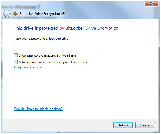When a BitLocker To Go encrypted drive is inserted to a PC with Windows 7, you will be prompted for the password immediately. The drive will be unlocked automatically when the correct password is entered. You can use the encrypted drive as usual.