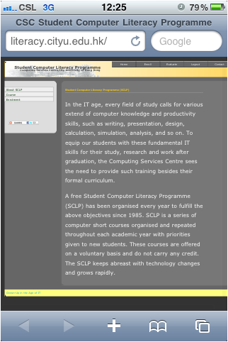 The website (http://literacy.cityu.edu.hk) of the Student Computer Literacy Programme (SCLP) has been revamped this summer to better serve the needs of students and meet the requirements of today’s web standard. The following web design guidelines have been adopted: