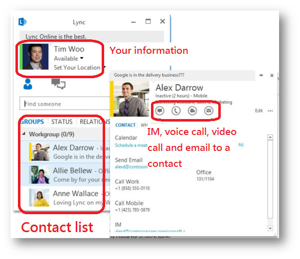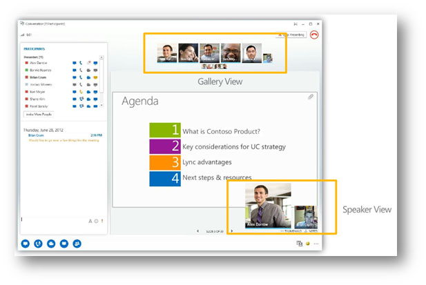 Like Skype, Google Talk or Facebook Messenger, Lync is an instant messenger app. You can send text messages, voice calls, video calls or even video conference calls among different parties. Lync 2013 uses the standard video codecs like H.264 and therefore the picture quality of the video can be up to 1080p.