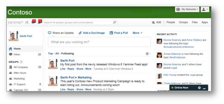 Yammer is a private social network that allows you to share information with your colleagues or students. Only authorized people are able to join this network, so the information is secure and only visible to them.