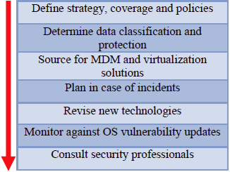 Corporations should prepare for the worst and know how to deal with incidents such as employees losing their personal mobile devices, which have been enrolled in the BYOD program. Moreover, employees may have questions and require technical assistance as part of the operational support. All these operational processes should be developed as part of the BYOD implementation strategy. It is also important that security fixes are taken into consideration so that the latest mobile security threats do not compromise a corporation’s IT security.